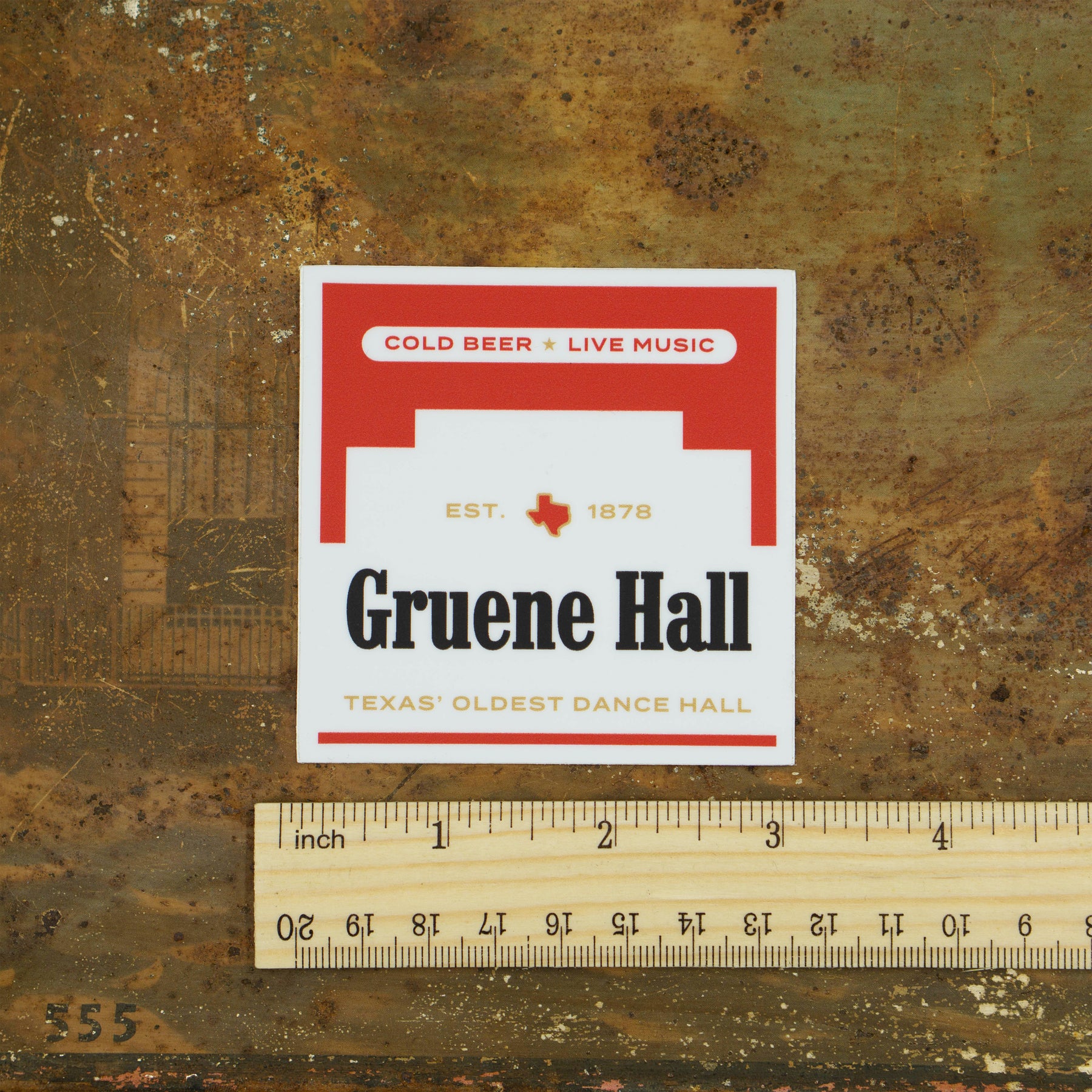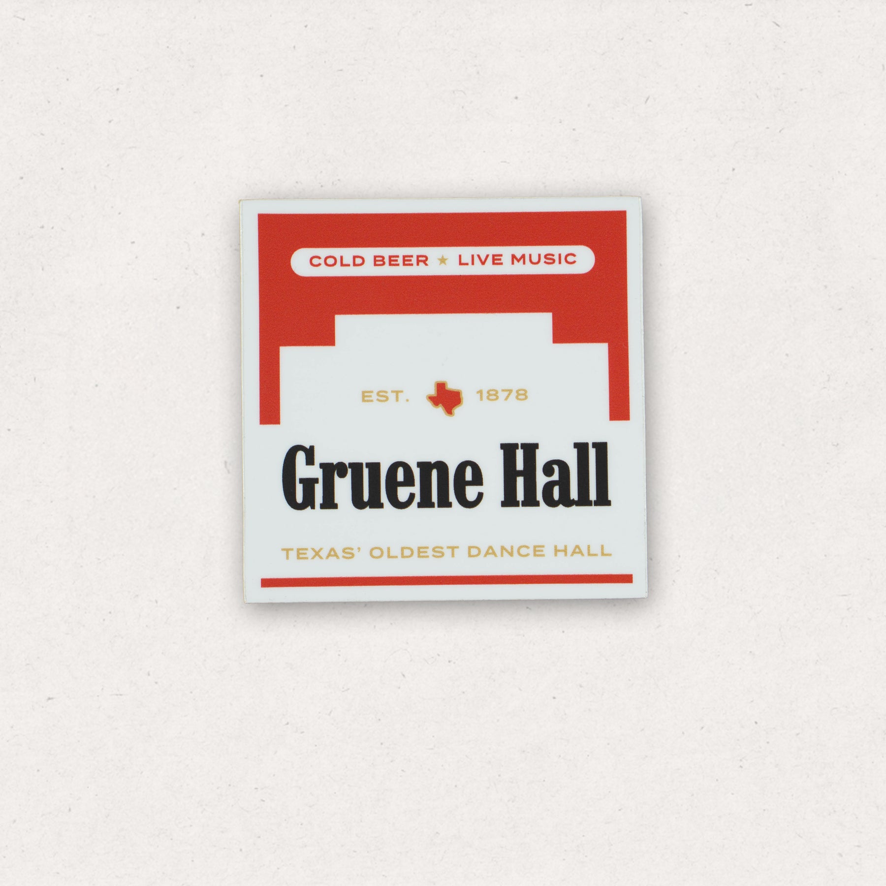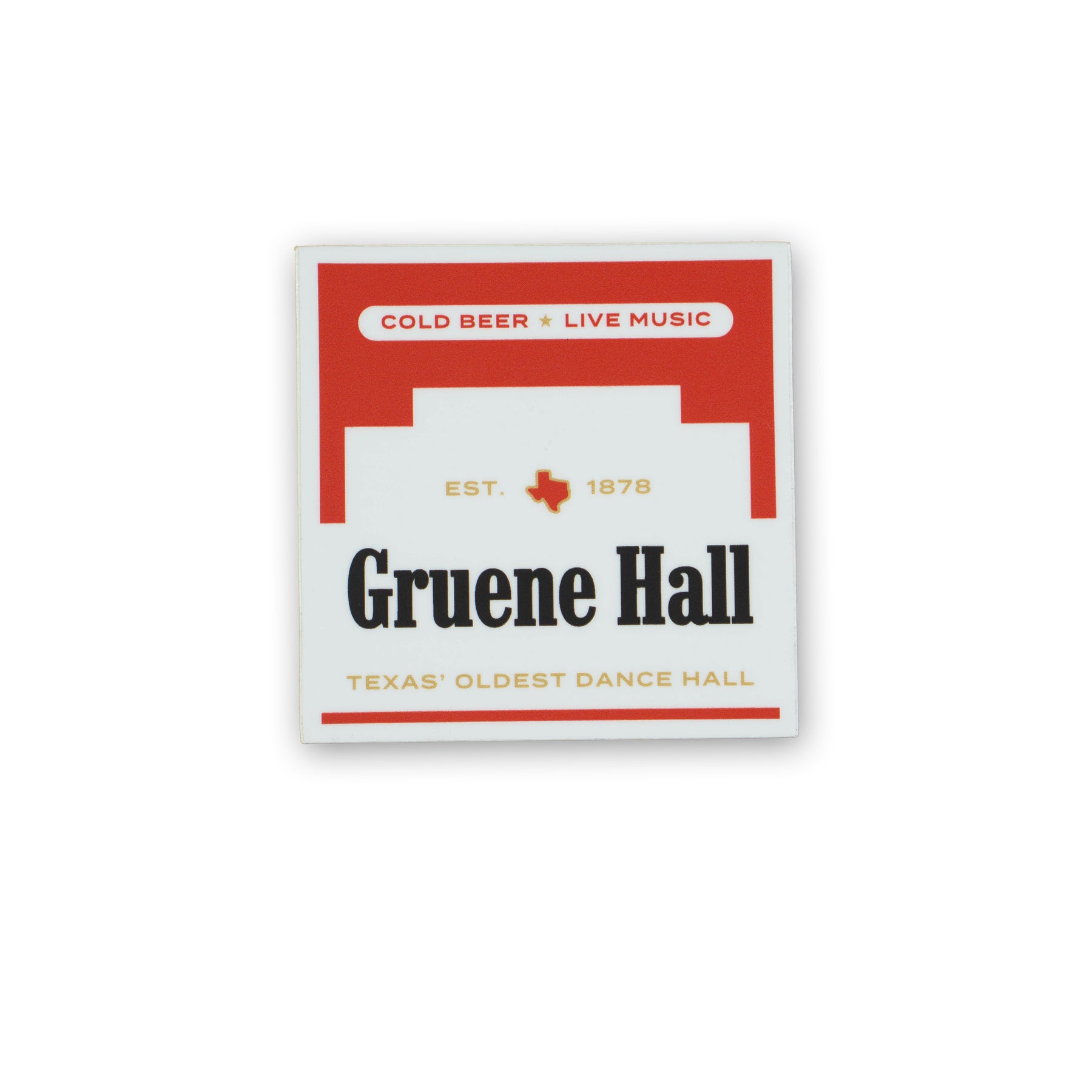 Vintage vibes and a water resistant finish, this Red Pack design harkens back to the old days at the Hall! An in-house design, this sticker will look good on any notepad or laptop, water bottle or guitar case.