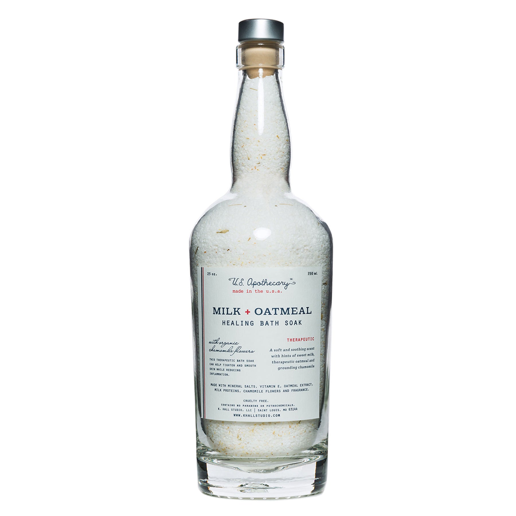 This bath soak is made with natural milk proteins and oatmeal extract, this fragrance is a soft and soothing scent with hints of sweet milk, therapeutic oatmeal and grounding chamomile.