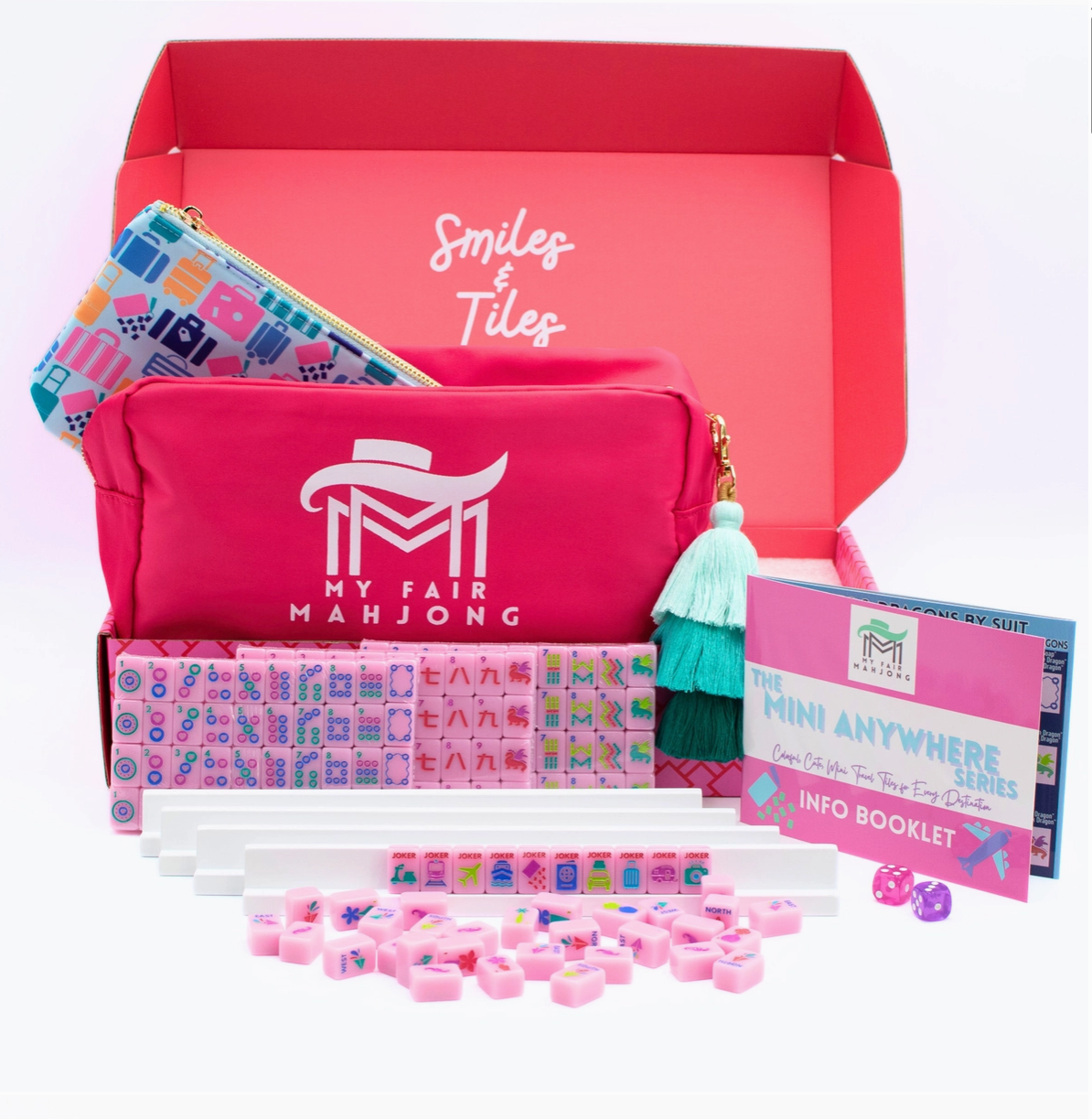 - 160 tiles (36 Dots, 36 Bams, 36 Cracks, 12 Dragons, 16 Winds, 8 Flowers, 10 Jokers, 6 Blanks)